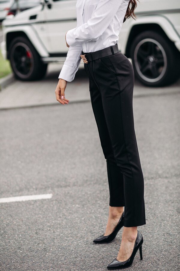 - Narrow trousers, pencil skirts and slim dresses often suit sleeker heels or flats.